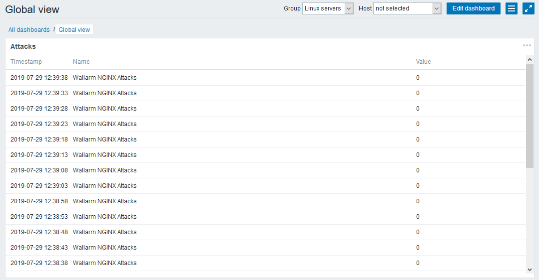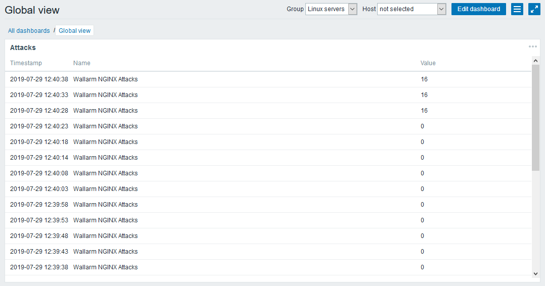 3. Make sure that the request counter has increased in both the wallarm-status output and the Zabbix widget: